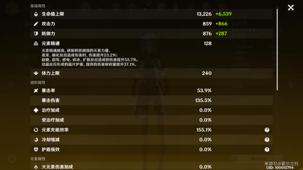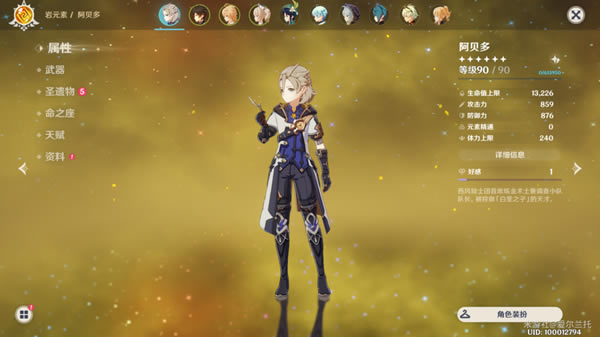 (以上面板均为参考,请务必以自身实际情况为准。) 在正式开始前先澄清一下有可能出现的误导:此类玩法优先建立在0命的基础上作为科普解释,命之座自然是越高收益越大但并不代表没有就不能玩,后续图例也为0命展示,希望各位理智看待,不要带节奏。 阿贝多的元素战技与元素爆发技看上去倍率不够高,尤其是元素战技“创造法.拟造阳华”的刹那之花加成是以防御力来计算的。但我们必须要注意一点,首先,阿贝多防御力的基础值也还算不错,有876的基础值。
