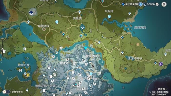 不算太阴间的这里就不放啦相信各位大佬们肯定都能找得到啦。岩之寻宝罗盘与风之寻宝罗盘在龙脊雪山与蒙德,璃月的交界处可以使用可以看到部分龙脊雪山箱子 本次分享游戏《原神》攻略。 |