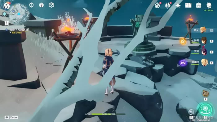 建议从覆雪之路出发,开启忍冬之树,再开启神像,从神像处向左飞可以直接到达左边的碎片广场。 第一块碎片最为简单,解锁之后会成为忍冬之树,类似神像一样,可以用雪山的红玉髓进行供奉获取奖励。