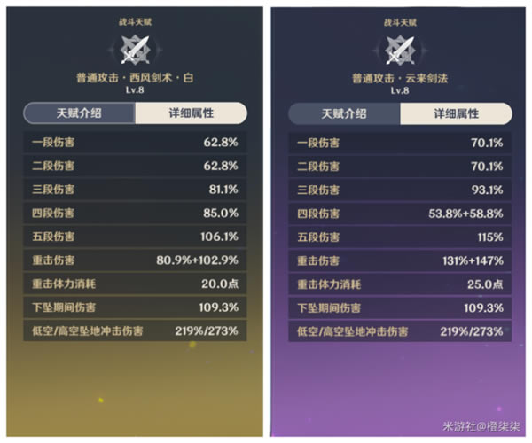 技能解析 天赋优先级:元素爆发(大招)>元素战技(技能)>普攻 1、普攻:西风剑术·白 进行最多五段连续剑击,重击为消耗体力瞬间向前方挥出两剑(类似刻晴) 普攻倍率对比(LV8):刻晴更胜一筹,阿贝多普攻倍率依旧拉胯,重击对比堪称直接猛男落泪,不愧是我米(感觉对比不明显的话,就这样说吧,阿贝多普攻的倍率连点赞哥和行秋都可以吊打) 解析:依旧是不靠普攻进行站场输出的角色,主要依赖大招进行爆发输出。