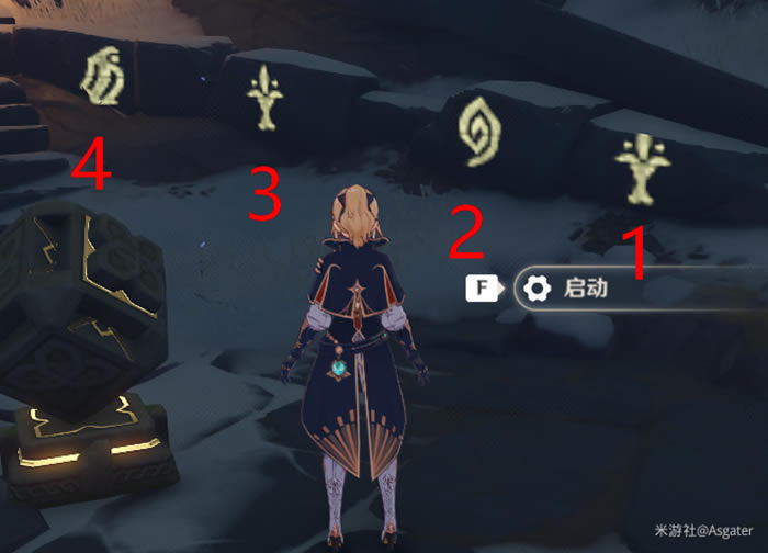 首先,这个洞窟的位置位于龙脊雪山这唯一一个七天神像的后左斜下方。其中,映入眼帘的便是一排符号,自右向左依次标记为1-8号。