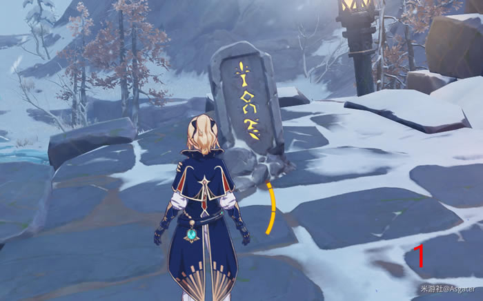 (石碑收集处左侧5-8号) 1号石碑 位于“覆雪之路”处锚点东侧的一处平台上。
