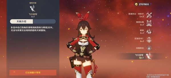安柏的天赋飞行冠军,降低飞行的体力消耗。为什么选安柏呢?待会就知道了。
