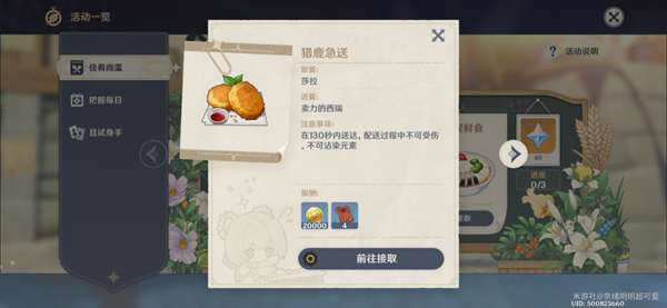 《原神》是由上海米哈游网络科技股份有限公司制作发行的一款开放世界冒险游戏,于2017年1月底立项,原初测试于2019年6月21日开启,再临测试于2020年3月19日开启,启程测试于2020年6月11日开启,PC版技术性开放测试于9月15日开启,公测于2020年9月28日开启。 原神佳肴尚温在12月15日开启了第五天的任务,那么今天的送餐路线是怎样的呢?下面一起来看看原神佳肴尚温第五天任务攻略吧。 原神佳肴尚温第五天任务攻略 今天可以派上我们的蒙德飞行冠军探索解密真君,也就是打火姬安柏出场啦!!