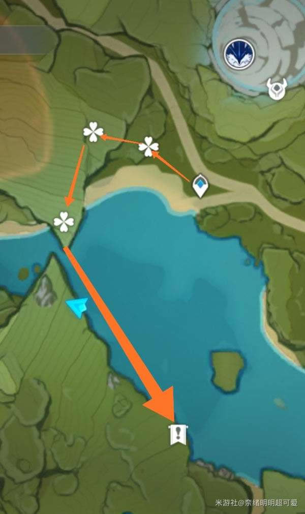 路线和之前的差不多都是跑到山崖,只不过就是地点不同,这时候我们跑到山崖那边直接起飞 ,飞到目标点就行了,具体的可以在游戏里面知道。(这下懂安柏的作用了吧)