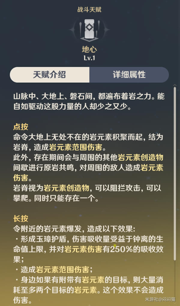 这个被动天赋让钟离生命值上限的33%直接加成在元素爆发的伤害上,且“玉璋护盾”也受益于钟离的生命值上限,一个锦上添花的天赋。 本次分享游戏《原神》攻略。 |