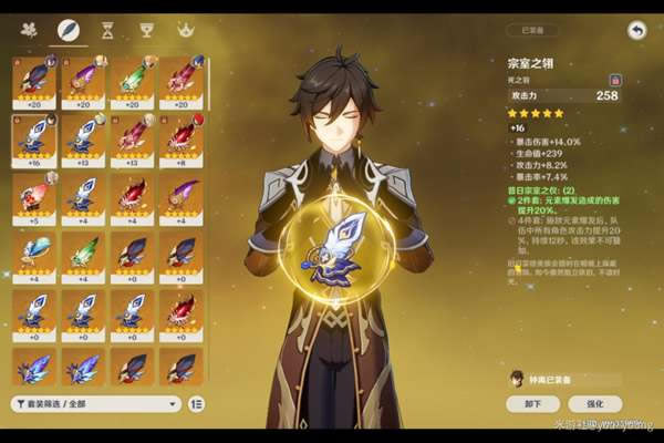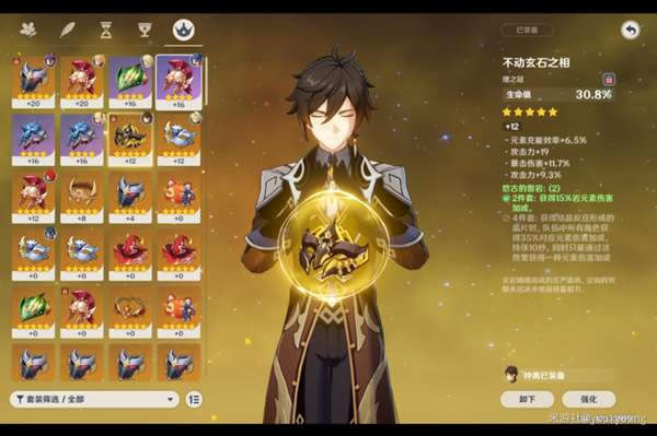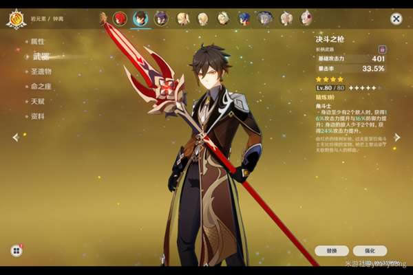 《原神》是由上海米哈游网络科技股份有限公司制作发行的一款开放世界冒险游戏,于2017年1月底立项,原初测试于2019年6月21日开启,再临测试于2020年3月19日开启,启程测试于2020年6月11日开启,PC版技术性开放测试于9月15日开启,公测于2020年9月28日开启。 原神钟离是一个很吃命座的角色,那么0命钟离怎么玩呢?武器和圣遗物该如何选择呢?下面一起来看看原神钟离0命玩法详解吧。 原神钟离0命玩法详解 无双岩双火。主词缀建议生命生命生命。完美副词缀是生命百分比,元素充能,双爆。攻击也可以。但绝对不能出现精通和防御。平民强烈推荐决斗之枪。决斗被动的收益对于钟离来说是很高的,基本没有稀释。个人并不推荐岩伤杯,因为我80级钟离带套装也有了30多的岩伤,90会有40多,而生命值46.6%*12965加钟离被动得到了收益并不低于岩伤杯,还能提高坦度和护盾。我用这一套打了爆炎树,大招不暴击12500。暴击会达到24500左右。我算了一下,全20级后血量应该可以达到4万,大招暴击也可以近4万,护盾1万多,综合来说,生命值圣遗物是钟离的首选。1万多的盾并霸体,有多强不用我多说了,12秒cd. 持续20秒,当个副C强度还是可以对的起他的星级。预期暴击60爆伤130(可进一步提升)