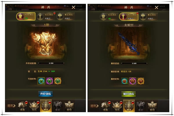 但见绿茵深处,精灵少女手持神兵。翩翩白纱半裸若隐若现,肤若凝脂,身姿柔美,眸光流转,胸……咳,她解封了《大天使之剑H5》的攻击神兵,获得了强大力量。(有人要她微信吗?没有的话,小编一会再问一次…) 神兵玩法解析 1、神兵系统在玩家第一个角色达到130级自动开放,届时玩家将获得一个神级技能。 2、神兵共分为攻击、生命、暴击三大类。 3、神兵是多维度个性玩法之一,玩家可以自由选择进行提升。