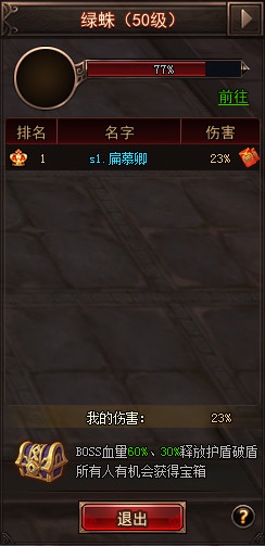 2、系统将会根据玩家对boss造成的伤害对玩家进行排名,排名领先有额外奖励哦!