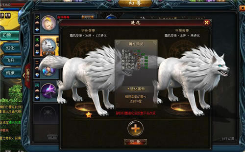 幻兽进化 幻兽达到一定条件后,可以进行进化; 部分幻兽进化后可以激活新的形象; 幻兽进化可以提升幻兽属性; 进化需要消耗同类型满足条件的幻兽;