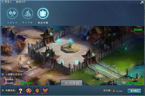 网页游戏顾名思义就是基于Web浏览器的网络在线多人游戏。在线分享网页游戏资讯 《思美人》帮会争霸。 . 1.开启时间 1)开服第一天晚20:00-20:30开启 2)开服一天后每周二、三、五、六、日20:00-20:30开启。 2.活动规则 1)拥有帮派的玩家才能参与活动 2)活动过程中通过运送宝箱和击杀其他帮派玩家获得积分 3)普通宝箱分布在场景上下2个区域内,采集宝箱并运送会物资官处即可获得积分 4)活动过程中击杀BOSS后将会掉落黄金和白银宝箱,运送黄金和白银宝箱可获得更多积分 5)击杀护送宝箱的玩家可获得对方的宝箱 6)帮会战力排行前三的帮会有资格参与霸主争夺区的角逐 7)霸主争夺区的胜利帮会才能获取全服第一的荣誉,可获得最强帮派的称号,帮主额外获得时装奖励 8)活动结束的时候积分达到100分的玩家才能获取相关奖励 9)活动奖励:参与帮会争霸可获得帮贡、战功、大量物品奖励 帮派战场景