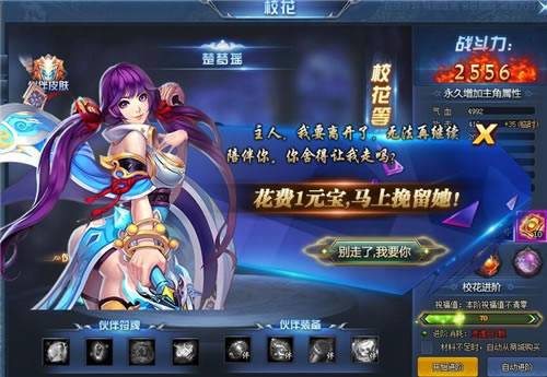 网页游戏顾名思义就是基于Web浏览器的网络在线多人游戏。在线分享网页游戏资讯 《校花的贴身高手》伙伴玩法攻略。 . 当角色完成33级主线任务后,伙伴系统即可开启,当提升到50级时是有60分钟陈雨舒的免费皮肤特效赠送,当时间到了,只需要花费1元宝即可挽留她哦,您没听错,只需1元宝哦。皮肤目前有4个伙伴,每个皮肤都是可以提升不同的战力,每个伙伴皮肤都附带不同的强劲技能,每个伙伴都能幻化出来,跟着主角一起战斗。