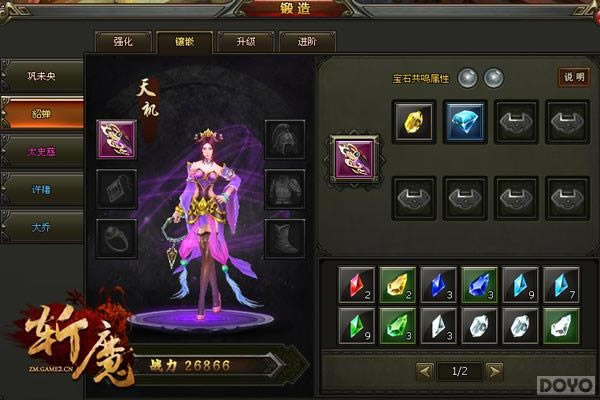 接下来再来看看装备的镶嵌。新游《斩魔》玩家可以在藏宝阁以及各种活动中得到物防、法防、攻速、法攻、物攻等不同类型的宝石,而后便能够在指定的装备上镶嵌进这些不同属性的宝石。宝石将为你提供相应属性的加持,且宝石的级别越高,你所能获得的额外加持也就越多。建议各位玩家一定要根据不同武将的属性合理搭配宝石,这样才能做到对症下药。