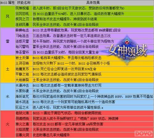 91wan《女神领域》中的元素共5种,水火风雷土,分别互相克制。可以根据右上角BOSS的元素信息,拿到克制BOSS的元素后再进行战斗,即可破解BOSS的元素技能。另外,有的BOSS的元素技能只用一个元素不能完全克制,要至少收集2个元素才能破解,这时我们就要观察上放的克制条,尽量多拿克制元素达到较高的克制度后进行战斗。
