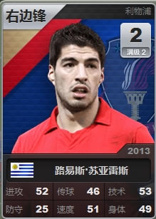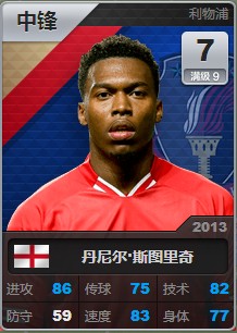 可以看到右上角为球员等级与等级上限。 让我们再来与非初始球员卡做个对比。