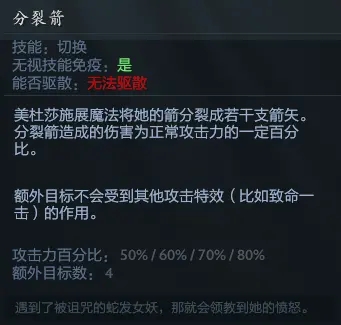 1、攻击力的折算是最后总和的折算,意味着出属性装和纯攻击装效果一样 2、在打野时剩一个怪的时候关掉分裂箭,打人同理 3、疯脸等沉默会无法开关 4、后期基本不会关掉 5、打建筑单位(塔、基地、墓碑、灵光、凤凰蛋、骨法棒子等)分裂箭会分裂周围的其他单位,但是打其他单位时并不会分裂到周围的建筑单位 6、主目标的伤害和次目标相同