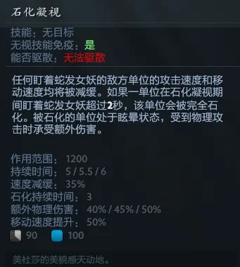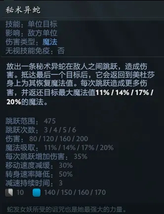 1、额外提升50%移速,一定程度解决了美杜莎缺乏机动性的问题 2、非常强的反手技能,配合团控效果很好
