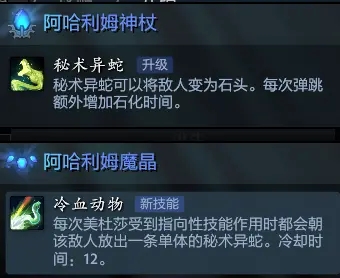 1、秘术异蛇无法被躲避(跳刀等闪烁技能) 2、远古单位能回很多蓝,屯一些远古没蓝了c一下直接回满