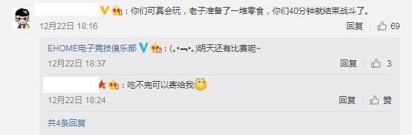 有玩家在Ehome官博下方评论,“你们可真会玩,老子准备了一堆零食,你们40分钟就结束战斗了。”