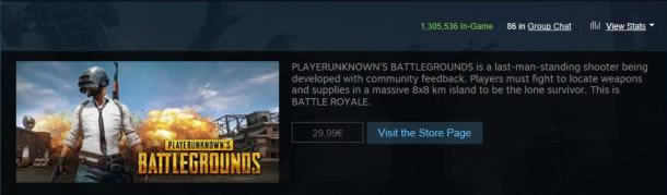 《绝地求生:大逃杀》实时在线玩家数:1305536