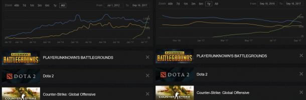 《绝地求生:大逃杀》、《Dota2》和《CS:GO》玩家趋势: