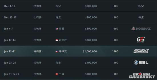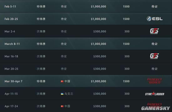 在巡回赛中,国际邀请赛的受邀名额将以积分决定,通过11场特锦赛和16场次锦赛的厮杀赢取晋级积分,最终决出八支队伍直接受邀参加国际邀请赛。 本赛季的另一全新之处为,在赛前选择阵容的阶段,教练可以与选手一起,参与选择阵容的讨论,但阵容确定完毕后,教练必须离场。 赛程安排,11场特锦赛和16场次锦赛分别拥有不同的积分和奖金,获得前四名的战队中所有选手均可获取积分,积分将决定着国际邀请赛的直邀名额,显得尤为重要。具体的分配信息,官方在后边的FAQ中给出详细的解答。