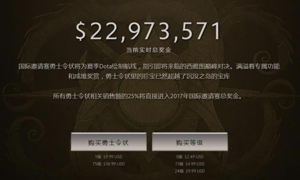 《DOTA2》TI7将会在8月3日凌晨正式开赛,截至30日20时40分,总奖金池已经达到了22973571美元,约合人民币1.55亿元,冠军奖金也突破了1000万,达到了10064371美元,约合人民币6780万元。