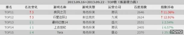 潜力榜方面,《疾风之刃》在测试后保持沉寂,《最终幻想14》与《上古世纪》、《Tera》这几款看起来高端大气上档次的游戏虽然都没什么动静但还是期待度颇高。