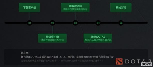 第一步,下载并安装DOTA2国服客户端。第二步,启动客户端,注册并登录DOTA2游戏账号。第三步,在DOTA2启动器中领取激活码,同时注册并登录完美电竞账号。第四步,使用激活码激活DOTA2。第五步,绑定DOTA2账号与完美电竞账号,开始体验游戏。倘若玩家本来就拥有DOTA2外服账号,那么进入游戏的过程将更加简单。而值得一提的是,完美电竞账号是用于提供服务的账号,不同于DOTA2游戏账号,请玩家们注意不要将两个账号混淆。