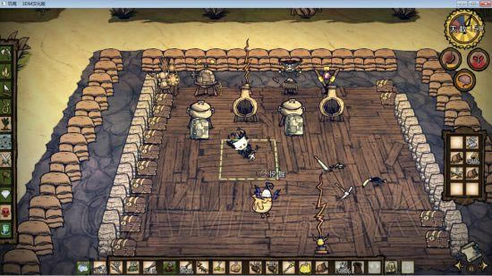 建筑区域 海难的家不宜过大,为什么呢?因为到了雨季期,你的家有可能被水淹,这时候我们需要暂时性的搬家。家的大小一般20~40平差不多了(一平等于一个底板,就是用草叉挖一个地皮) 主要建筑 (1)装备制造仪器:科学仪器、炼金术引擎、灵子分解器、阴影操纵仪 (2)生活必备设备:锅、冰箱、壁炉、宝箱、帐篷。(火坑不用造,完全没必要,吸热火炕在有冰箱的情况下可以不建,造两个热能石放冰箱轮换用就可以了,没有找到齿轮怪的玩家必须在火山期的时候建一个) (3)辅助设备:避雷针(必须建、不建季风期家毁人亡)、温度计、湿度计、造冰机、雪球机。(后三样东西可以不造),最后是墙,注意墙最好最后建,并用沙袋。