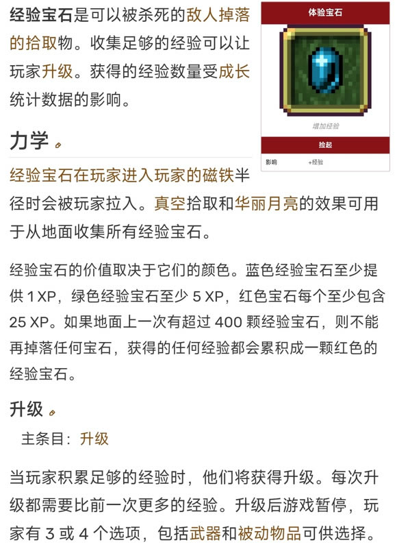 《吸血鬼幸存者》是poncle制作发行的一款休闲动作游戏,于2021年12月17日在PC端Steam平台发行抢先体验版,2022年10月20日正式发行。游戏在发行体验版后获得了玩家好评,截止2022年2月在Steam上的最高在线人数突破62000人。 《吸血鬼幸存者》是poncle制作发行的一款休闲动作游戏,于2021年12月17日在PC端Steam平台发行抢先体验版,2022年10月20日正式发行。游戏在发行体验版后获得了玩家好评,截止2022年2月在Steam上的最高在线人数突破62000人。 吸血鬼幸存者中各等级升级所需的经验是多少?部分玩家可能还不清楚,下面一起来看看吸血鬼幸存者全等级所需经验一览吧。 吸血鬼幸存者全等级所需经验一览 经验宝石的价值取决于它们的颜色。蓝色经验宝石至少提供 1 XP,绿色经验宝石至少 5 XP,红色宝石每个至少包含 25 XP。 如果地面上一次有超过 400 颗经验宝石,则不能再掉落任何宝石,获得的任何经验都会累积成一颗红色的经验宝石。 每次升级都需要比前一次更多的经验。 具体数据请查看图二/表格。 那也就是说:对于开荒和高难来说,规划前20级、20-40级的升级如何分配,需要一定程度上重新考虑。