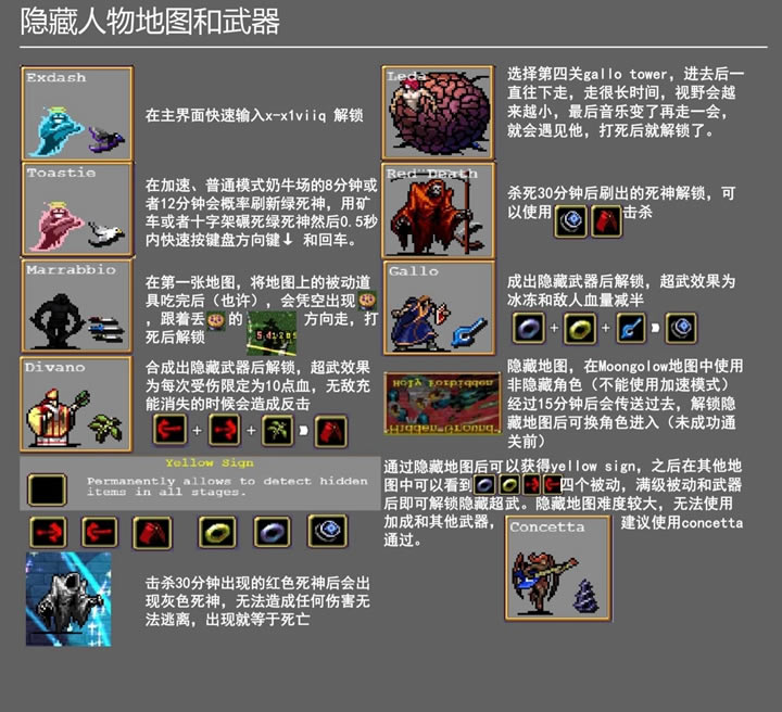 以上就是逗游单机频道带来的吸血鬼幸存者全隐藏人物、地图收集指南,更多精彩内容尽请关注逗游单机攻略频道>>> 本次分享游戏《吸血鬼幸存者》攻略。 本次分享游戏《吸血鬼幸存者》攻略。 |