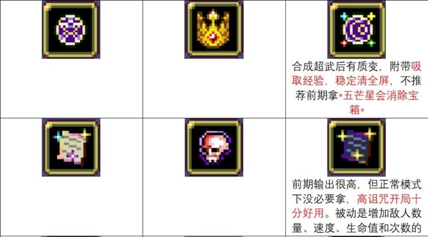以上就是逗游单机频道带来的吸血鬼幸存者0.6.6最新超武合成表分享,更多精彩内容尽请关注逗游单机攻略频道>>> 本次分享游戏《吸血鬼幸存者》攻略。 本次分享游戏《吸血鬼幸存者》攻略。 |