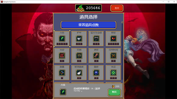 吸血鬼幸存者道具加点思路分享 游戏里道具总点数越多 ,升级一个道具点数的价格就会增长,在此基础上每个道具的本身成长金额也各有不同。这样我们可以遵循三条规则: 1先买道具点数高的 2先买成长金额高的 3先买本金贵的 所以可以得出点道具顺序 复活→重新选择→数量→成长→冷却→幸运(护甲)→贪婪(力量,恢复)→ 持续时间(磁铁,移速,射速,范围)→最大生命值→跳过→海豹banish 在这三个规则上依照以上点法 总花费203148 个人认为是较为接近最优解的点法