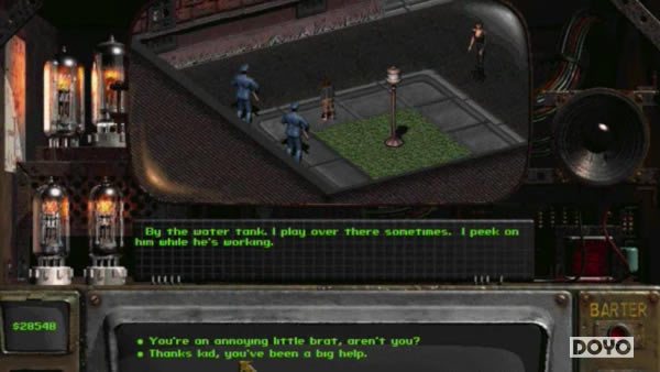 【逗游原创文学组独家专稿转载还请注明来源QQ交流群号:158105576】 作者:撒纳达 《辐射》系列最辉煌的特点之一是,无论你从地球上哪个可怕的被辐射的角落里爬出来,你所做的选择都完全取决于你自己,当然,这些游戏都有自己的主要任务,但也有无数的支线任务和角色互动等着你去探索。有了这样一个自由探索和选择的组合,人们当然会选择扮演一个彻头彻尾的坏蛋,这里说的不只是那种横行霸道的邪恶,而是比这更严重的垃圾中的精华,因为还是有很多行为会让你瞬间坠入地狱,化身魔鬼。 所以,让我们准备好迎接这一切吧,这一切很有可能是既黑暗又恐怖的,当我们从《辐射》系列中考据的时候,我们就会发现,你可能并不仅仅只是个无足轻重的坏人。 1.用孩子来传递一个可怕的信息—辐射2 绝对权力的腐化。 这种情绪可以很好的总结出《辐射2》中的主教。他对权力的渴望让他变成了一个无情的领导人,会尽一切可能确保他的家人是其中最强大的力量。 对于《辐射2》的主角来说,这意味着用人性的每一丝每一毫来换取快速赚钱的机会,主教让你暗杀弗兰克·卡尔森,NCR的副主席,这将帮助他破坏该地区的稳定并让他的人打入内部。 要做到这一点,可以采取多种方式,但如果你想用最邪恶的方式,你可以到卡尔森的住所,和他的儿子谈谈,顺便说一句,他的儿子是一个纨绔子弟,有着被宠坏的富家子弟的所有表现,但这并不能成为在孩子口袋里放炸弹,让他去找他的父亲,然后引爆炸弹炸死他们俩的借口。 这牵涉到另一个无辜的生命,可能还有无数其他的生命,都是为了成全主教卑鄙梦想的邪恶,而且这真的一点也不酷。