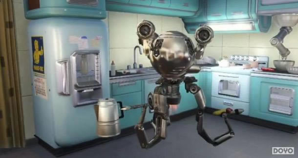 《辐射4》DLC“机器军团”中,玩家们将可以用零件改装自己的机器同伴,前两天我们看到新闻机器人管家Codsworth被改造成各种威力十足的装甲怪兽。