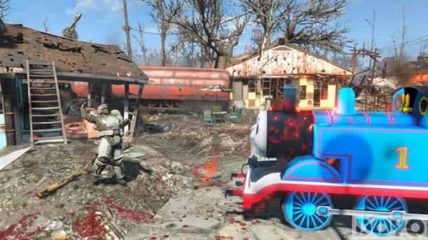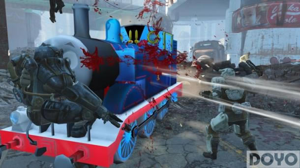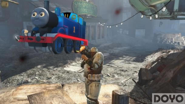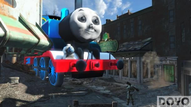 在该MOD中英国卡通形象小火车“托马斯”进入了废土世界并开始对联邦大肆蹂躏。除了给托马斯加上了各种武器与导弹外,还对原作中熟悉的汽笛声也进行了还原。