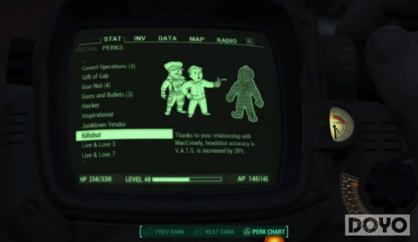 当玩家在《辐射4》中与小伙伴亲密度满点的时候,就可以开启他们的特殊技能,不过迈克奎迪的“爆头”技能本应增加20%的爆头几率,不过事实上并非如此。
