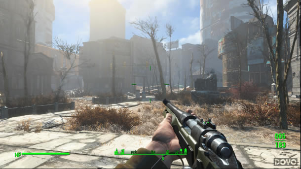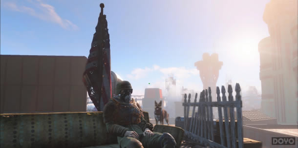 不得不说,《辐射4》的动态光照也十分给力,透过建筑物,树木等等的表现恰到好处。200年后的世界并非一潭死水,而是充满了希望,生机与活力。对于钟爱50年代复古文化的玩家来说,《辐射4》的画面绝对符合您的胃口。