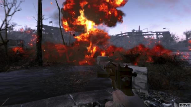 《辐射4》中虽然充满了散发着恶臭的绿色胶状物、丢失的泰迪熊和丧尸的四肢,但它在较低的配置下仍然有着不俗的表现。登上每一个丘陵令玩家感到无比激动,因为这不只是冒险,还有着怡人的景色。玩家们可以在高处边寻找目的地,边欣赏美景。 一般情况下,用户调整到4K分辨率是为了更好的画质,但是由于设备原因《辐射4》在4K分辨率下截图经常报错。因此这批游戏的截图分辨率为2560*1440。 《辐射4》并不是那种特别精致的游戏,当你靠近物体还有角色时,分辨率越高,模糊的纹理和尴尬的动画表现越明显。不过在远景时画面还是非常不错的:地平线尽头充满了树木、建筑还有其他各种各样的环境要素,这些清晰的远景让《辐射4》的密集的建筑更容易让人们接受了。