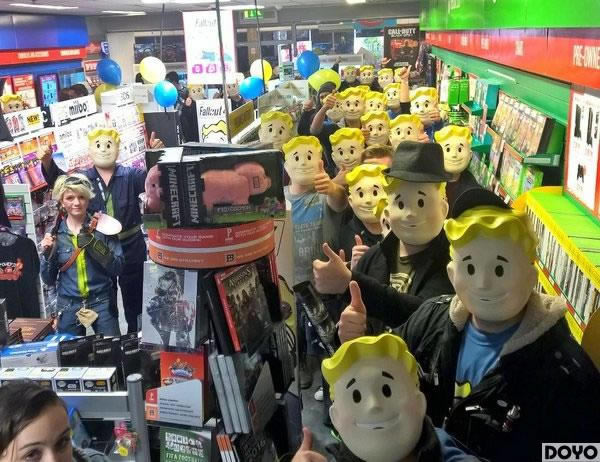 万众期待的大作《辐射4》终于开始发售,虽然是深夜不过在英国与澳大利亚先行发售的商店内仍是排起了长队,辐射爱好者们身穿《辐射》系列的各种COSPLAY,一同迎接着游戏的发售。