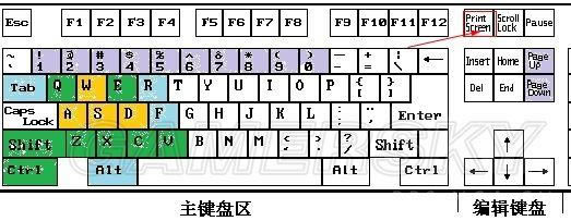 黄色为控制人物移动的按键,绿色控制人物状态,淡蓝色为特殊动作,紫色为快捷键(不常用),稍后细讲。