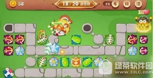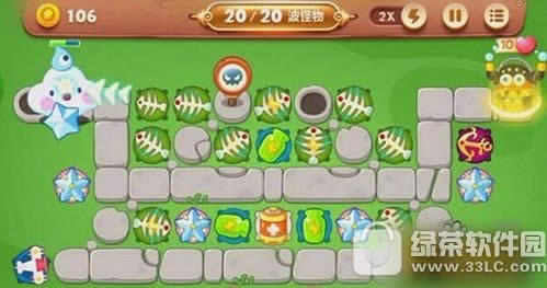 公园第8关道具全清攻略: 炮塔:正电塔,冰冻星,鱼刺,飞机 波数:20