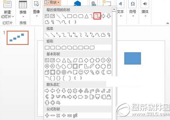 ppt流程图制作方法: ①启动PowerPoint2013,单击菜单栏--插入--形状,选择方角矩形,在图中画出来。