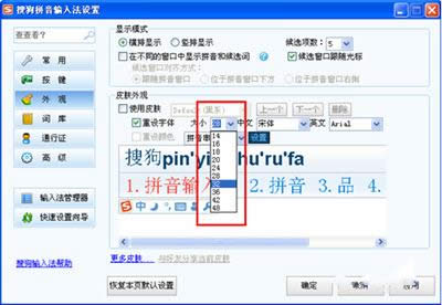 1、首先,将自己电脑的操作系统输入法调整为“搜狗拼音输入法”,然后点击搜狗拼音输入法界面中的相关设置选项,如下面图片所示。 搜狗输入法字体怎么调大 2、这里,我们点击“设置属性”,然后打开如下面图片所示的界面,在设置界面中,我们选择“外观”选项功能卡。 搜狗输入法字体怎么调大 3、很明显,我们可以看到有一个关于软件打字界面字体大小的相关设置,这里,依据我们个人的使用习惯进行调节吧,点击“重设字体”,然后进行相关调节的具体步骤,请看下面我的图片操作步骤展示。 搜狗输入法字体怎么调大 硬件是实在的,有模有样的。软件是程序性的。是一系列的指令。有了软件,硬件才会实现更丰富的功能。 |