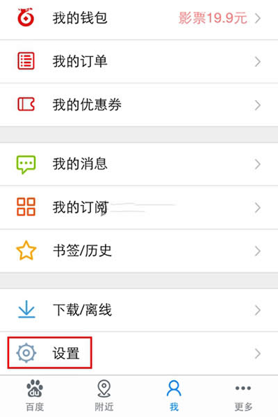 手机百度怎么屏蔽广告 2,找到之后点击一下【我】按钮图标,便可来到个人管理中心,在其页面下方找到【设置】栏,如下图所示:
