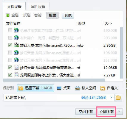 4、最后点击立即下载这样迅雷7就下载种子文件了。