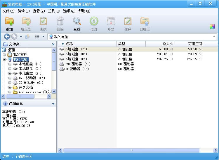 2345好压主界面布局:文件、编辑与查看菜单