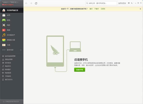 豌豆荚连接手机的方法有很多种,我们也可以通过wifi连接电脑,那么豌豆荚绑定手机和使用wifi连接模式,这两种方式怎么连接电脑?如果你之前没有在豌豆荚绑定手机,请按如下步骤操作:STEP 1 : 将豌豆荚PC版与豌豆荚
