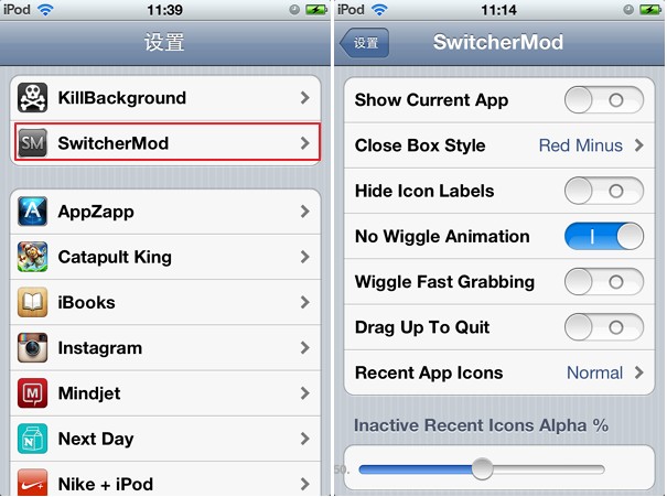 前提:以下教程只针对越狱用户1、安装SwitcherMod,它的作用是使任务栏中的软件可直接显示删除角标,无需再手动长按软件。由于bigboss源就有这款插件,可运行cydia,直接搜索SwitcherMod,然后进入
